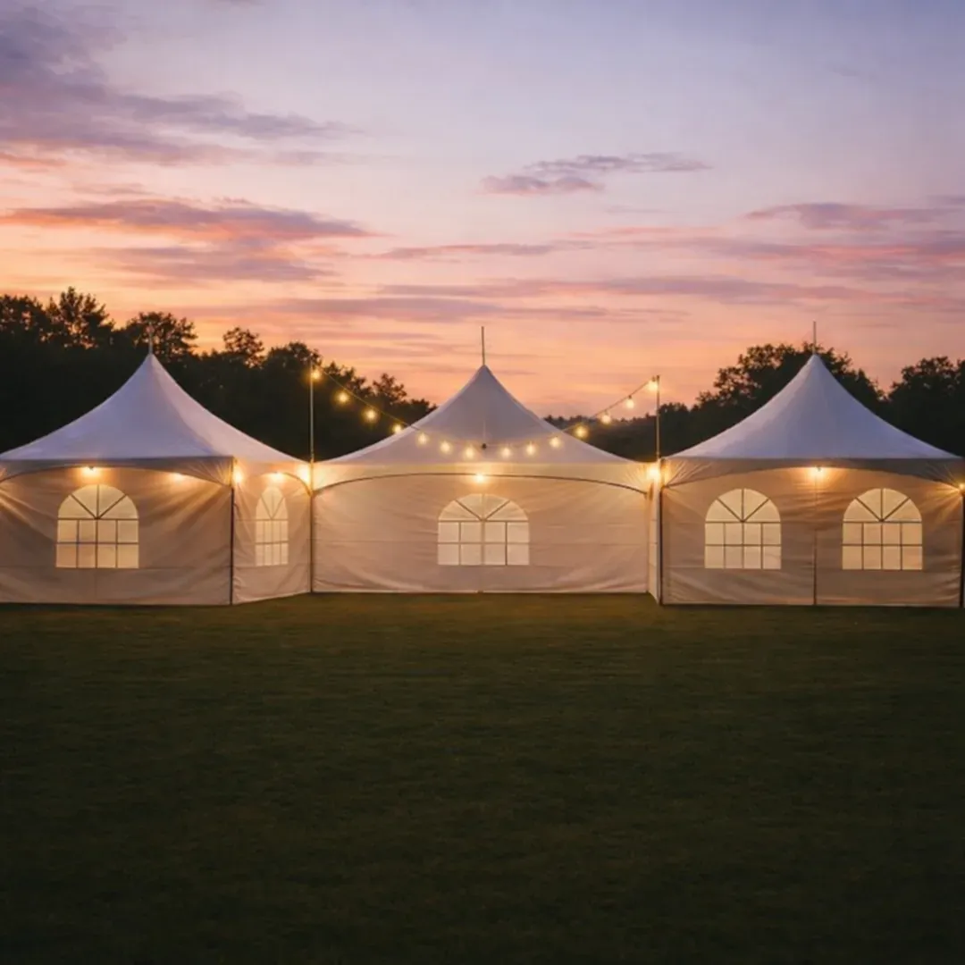 Larger high-peak tents available for events up to 200+ guests. Perfect for weddings, graduations, and backyard parties throughout Metro Detroit, Macomb, Oakland, and Wayne County. Call for current availability.