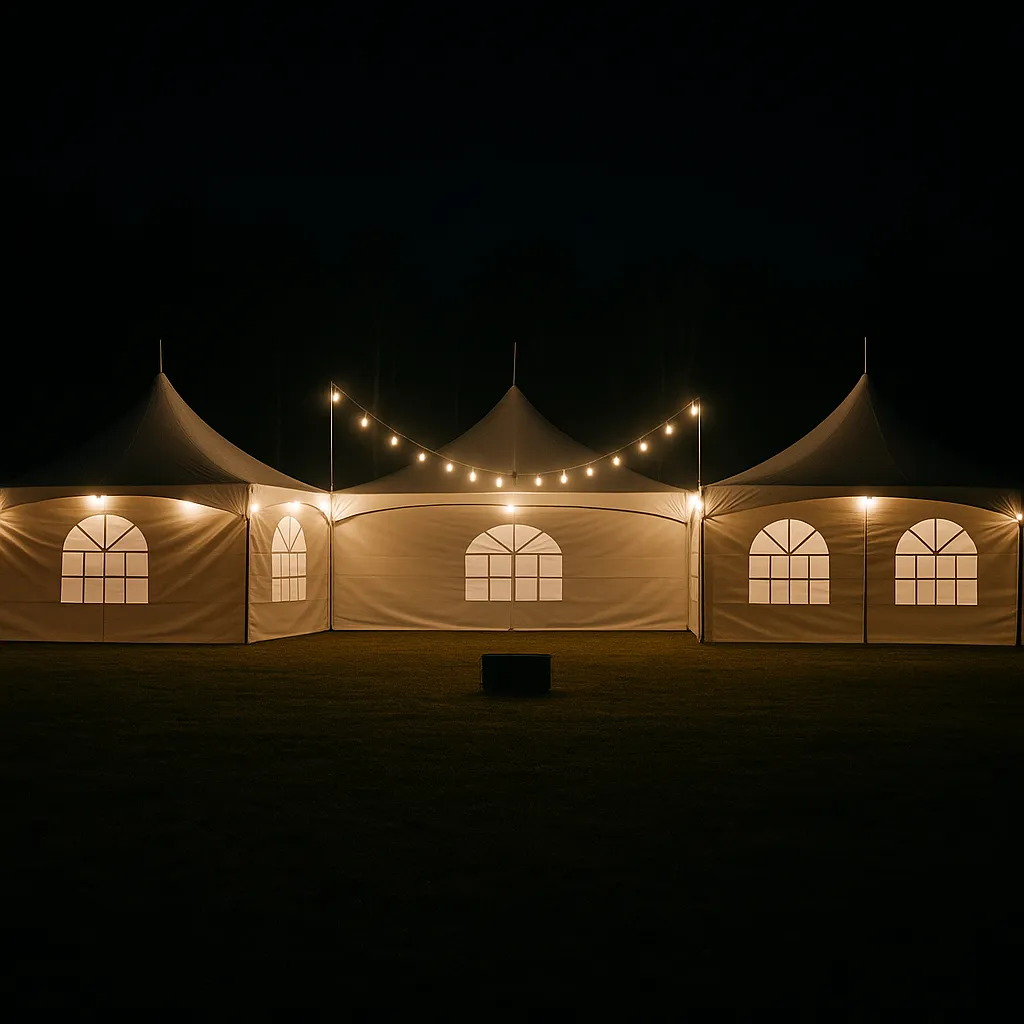 We specialize in custom-shaped tents and flexible setups that can be tailored to your space and style. No two weddings are the same — and that’s exactly how we like it.